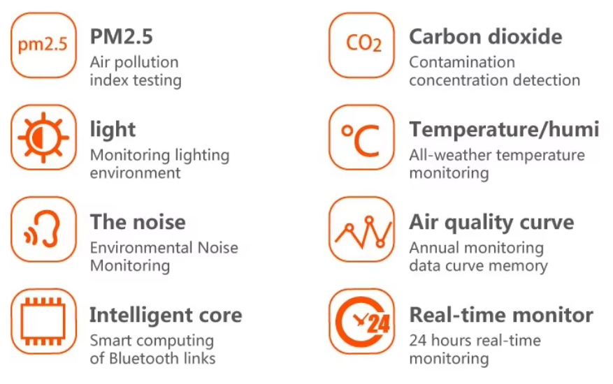 | Internal Sensors: | CO2, PM2.5, humidity, temperature, noise, light |