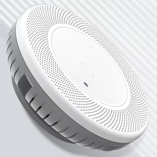 Insight Detect is a smart environmental monitoring device designed to help short-term rental hosts protect their property. The device monitors indoor air quality, detects airborne particles associated with smoking or vaping, and tracks sound volume levels that may indicate excessive noise.